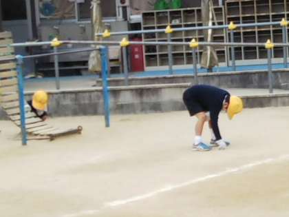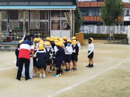 1年生は、海老江東小の中を校庭と学習園の草ひきなどをしてくれました。