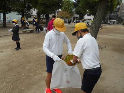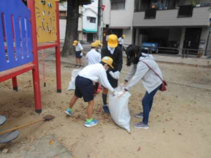 2年生、5年生、6年生は、海老江上公園のクリーンアップに行きました。