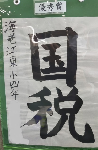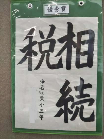 福島区役所に、税に関する習字の入選者の作品が掲示されています。