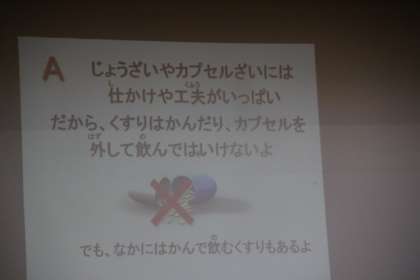 学校薬剤師の先生をお招きして、お薬のつかいかたを学ぶ「お薬講座」がありました。