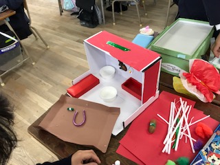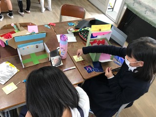 選んだ材料と自分で集めた材料を使って、素敵なお店づくりが進んでいます。何屋さんができるか楽しみですね。