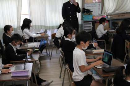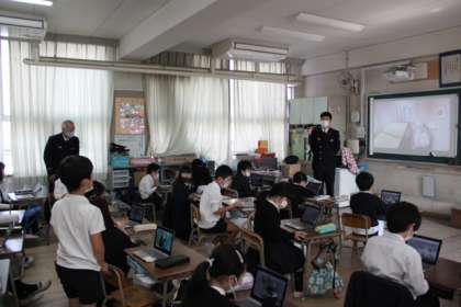 パソコンを使って、阿倍野防災センターをバーチャル体験することができました。