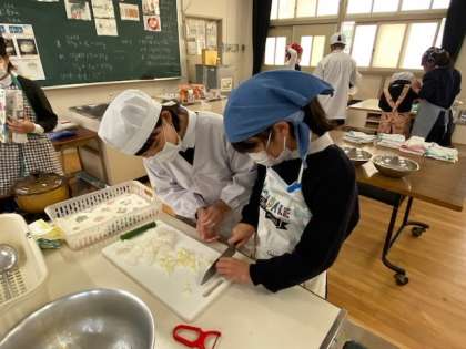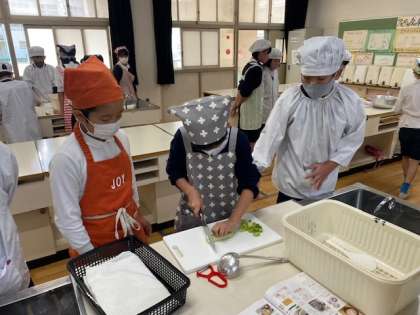 ごはんとみそ汁を作る調理実習です。