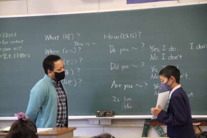 「阪神では、だれが好きですか?」「近本選手です。」というような英語の会話をMr.Aとしました。