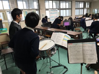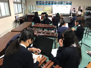 打楽器や木琴パートも和のリズムを奏でる練習をがんばっています。表現やテンポ・息合わせ方などを相談しながら進めています。曲の仕上がりがとても楽しみです。