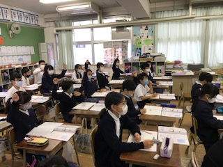 今日の算数では、考えを発表し合い、友達の考えに意見をつなげ、思考を深める活動を進めています。