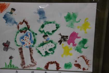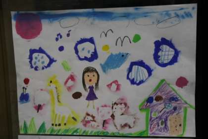 自分で作った型を紙に写すことを楽しみながら絵に表しました。