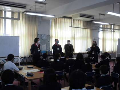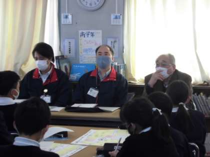 今日は、連合町会会長さんと区役所の町づくりの担当の方にご来校をいただき、海老江の町や福島区について、いろいろ教えていただきました。
