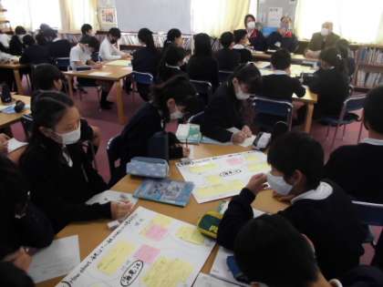 6年生が、国語で「町の幸福論ー海老江の未来をえがこう」という学習をしています。