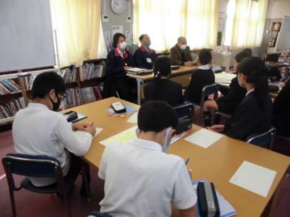 「若い人、お年寄りがいっしょに交流できる町に、交流できる場所ができるといいなあ。」貴重なお話をお聞きして、子どもたちもたくさんメモをしていました。