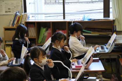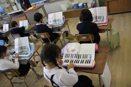 1ねんせいもこの時期になると、けんばんハーモニカの指づかいもとてもじょうずになっています。楽しそうに演奏していました。