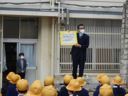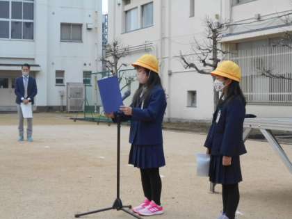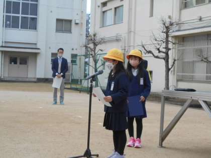 校長先生のお話の後、2年生の児童代表が3学期の目標を発表しました。