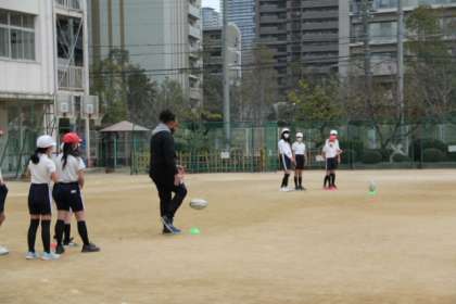 大阪市のトップアスリート事業で、6年生がラグビー体験をしました。