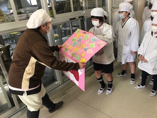 1月24日から28日までは、給食週間です。最終日を迎えました。感謝の気持ちを込めて、給食調理員さんに各学級からメッセージをお渡ししました。毎日おいしい給食をこれからも楽しみにいただきます。