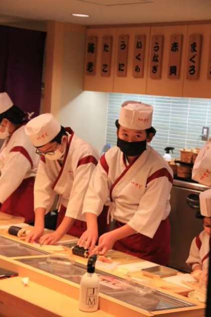 写真上から、ボールペンの製造、写真中、すし職人、写真下、ソフトクリーム店体験です。ボールペンはお土産に、食品はもちろん食べることができます。