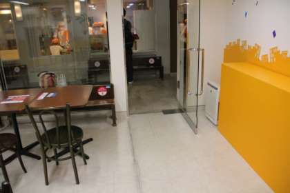 食事スペースも各所にあり、パーテーションも設置され、先のグループが終わると消毒作 業が始まります。