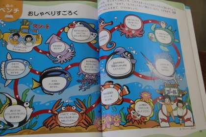 進んだところには、「好きな食べ物を話す。」とか「好きなテレビ番組は?」とか書いてあります。それをきっかけに話すのです。