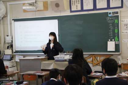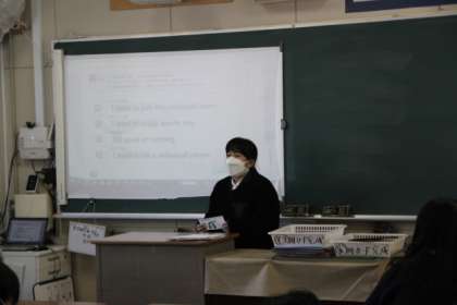 「将来の夢」ついて、教室の後ろにいるMr.Aと会話をしています。