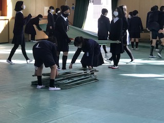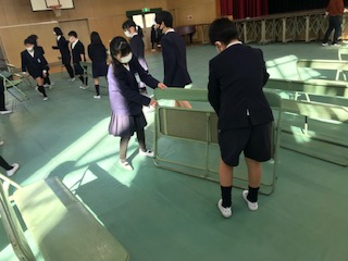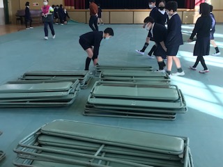 3月18日の卒業式に向け、講堂の準備が始まりました。毎年、5年生が担当します。来年度には最高学年、さすがにたくましく、どんどん作業が進みました。心を込めて会場づくりに取り組みました。