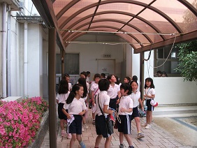 5月29日(金)朝から気温がぐんぐん上がり、30度を超えるような暑さになりました。体育の授業が終わった後、熱中症対策のために今年も運動場前の廊下に設置したミストで、冷たい霧状の水を浴びて、「ああ気持ちいい!涼しい!」と喜びの声を上げていました。
