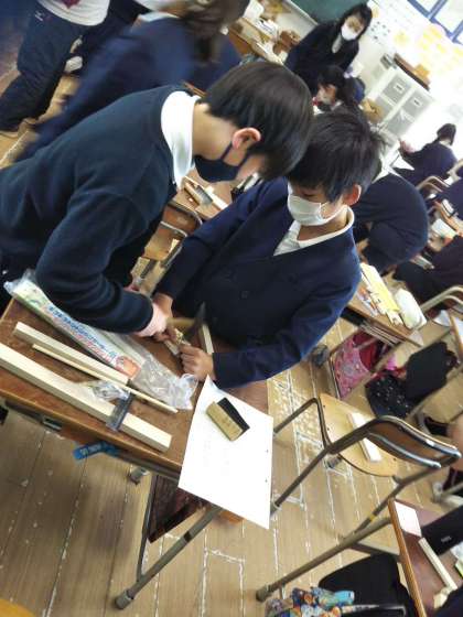 くぎを上手に使って、動く仕組みを作ったり、友だちと協力したり4年生らしい良い活動がたくさん見られました。