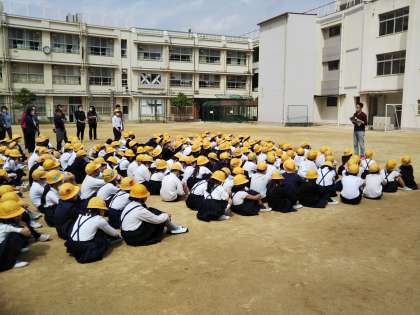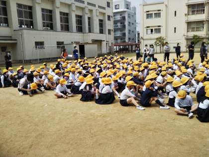 今日は、西校舎の理科室から火事が発生ということで避難訓練がありました。