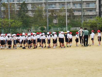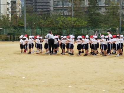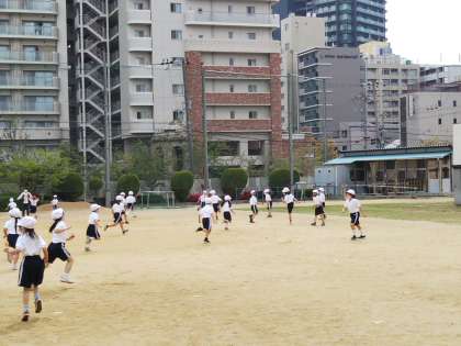 つぎは、おにごっこをしました。広い小学校の運動場をかけまわっていました。