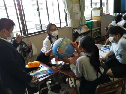 どの国がどの位置にあるかを表すのに、緯度(いど)と経度(けいど)を使うとわかりやすいことも学習していました。