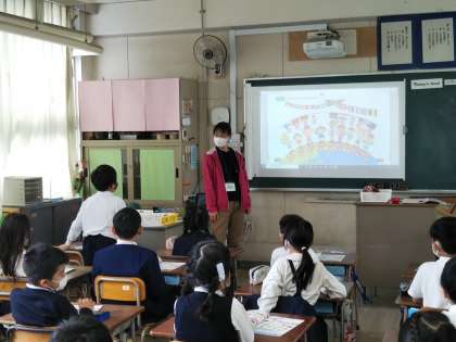 いろいろな国の様子を映像で見ながら、それぞれの国のあいさつを学習しました。
