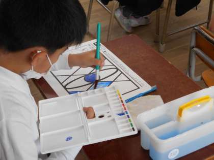 「絵具と水のハーモニー」というテーマで学習していました。