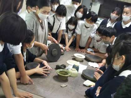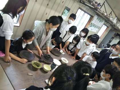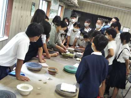 信楽焼の陶芸体験をします。まずスタッフの方から、作り方の説明をお聞きします。