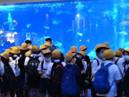 館内は、遠足の中学生がいますが、小学生の団体は少ないです。