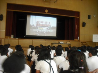 6月11日(木)今日は交通安全指導を行いました。福島警察署の方や福島区のフッピー隊の方に来ていただき、お話やDVDを見聞きました。天気が良ければ運動場で自転車の実技指導を予定していましたが、あいにくの雨空で講堂での活動になりましたが、正しい自転車の乗り方や危険な場面をもとにした良くない例などを教えてもらいながら、子どもたちはみんな真剣に学んでいました。