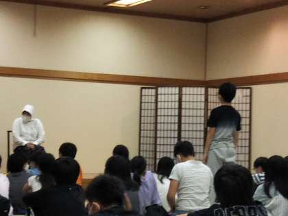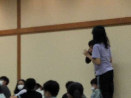 質問タイムでは、とてもたくさんの質問が子どもたちから出ました。例えば、「海女さんが、海でこわいと思うことは?」「サメよりもウツボが周りのえものを漁(あさ)っていて怖い」そうです。それと、水圧で耳が聞こえにくくなることがあるそうです。