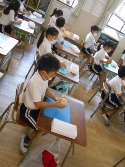ねんどのかたまりから、ひねりだしたり、ゆびで変形させたりして、造形遊びをしていました。