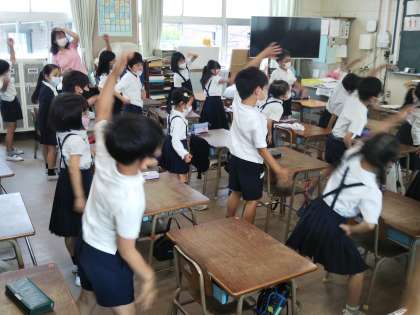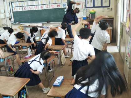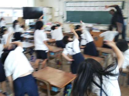 横まげをしながら、英語で「20」とカウントしたり、いろいろな動きをしながら、英語でカウントしていきました。