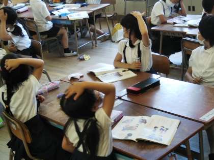 3つめのしれいは、「よこをむく」4つめのしれいは、「みぎてをあげてあたまをかかえる」だったと思います。