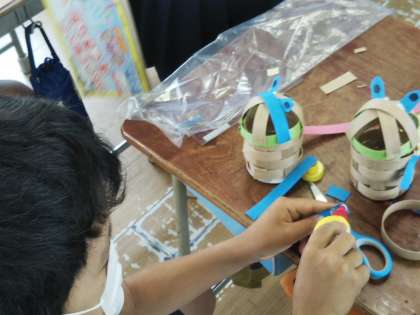 材料をつけ加えて、オリジナルの作品や2個作っている子もいました。