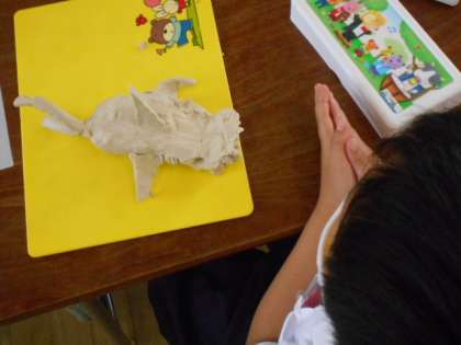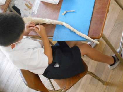 すべりだい、大きなへび、テーブルといす、ホオジロザメ、・・・自分なりにいろいろな工夫をして、みんなすごいげいじゅつかです。
