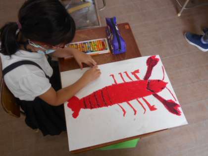 パスでしっかり塗り込んでいることや画用紙いっぱいのザリガニに驚きました。
