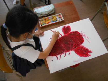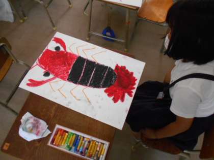 子どもたちが描いたザリガニは、みんな違っていて個性的です。