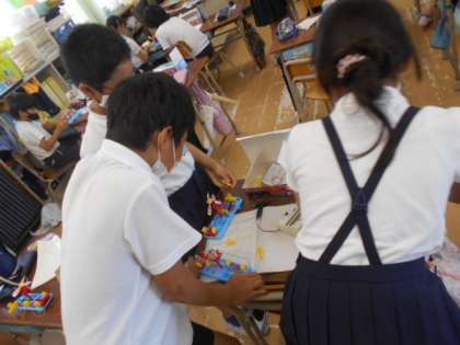 かん電池をつなぐ向きを変えると回路に流れる電流の○○が変わり、モーターが回る向きも変わります。ということを実験で確かめました。