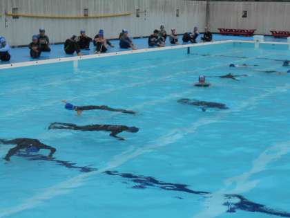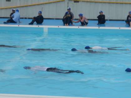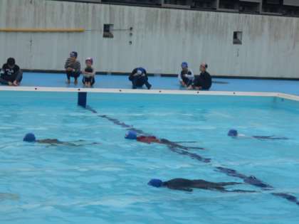 家から用意してきた服を着て水に入ってみました。服やくつをつけているだけでとても違和感があり、行動がしにくいのです。