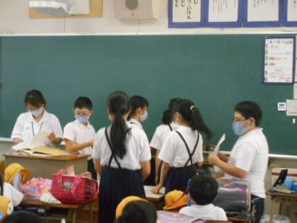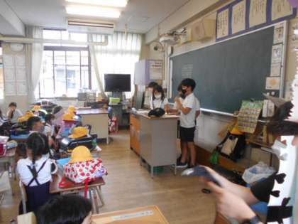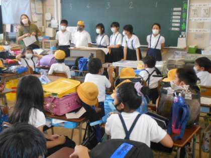 1年生が困らないように、高学年児童が教室までお迎えに行きました。