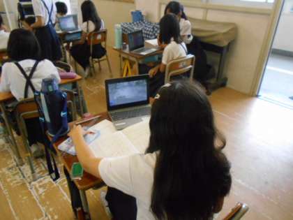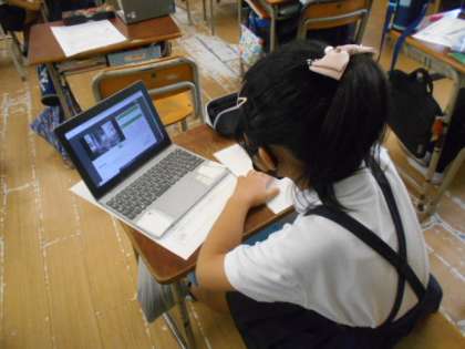 タブレットPCを使って「環境問題を解決するための」調べ学習をしていました。