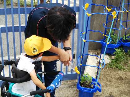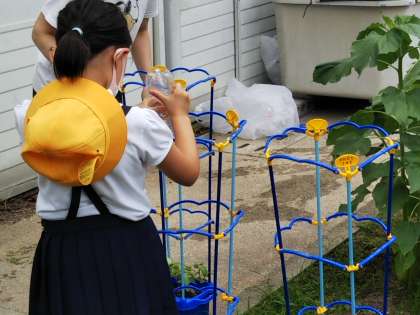 これから花がさき、種ができ、そして・・・子どもたちにとっては、たねから花、そしてたねになるまで、アサガオの世話をしながら、いのちについても考えます。