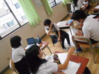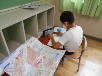 6年生が、総合的な学習で防災ポスターを作成しています。