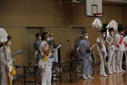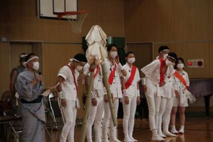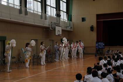 祭りの準備が忙しい中、北之町と東之町のみなさんが、海老江東小学校に来てくださいました。