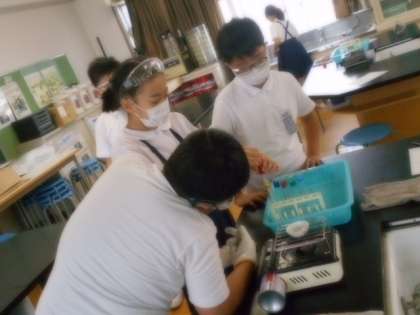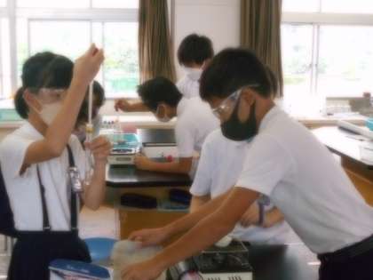 次に過熱して、蒸発皿に残ったものがあるかどうかを調べました。