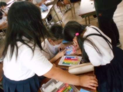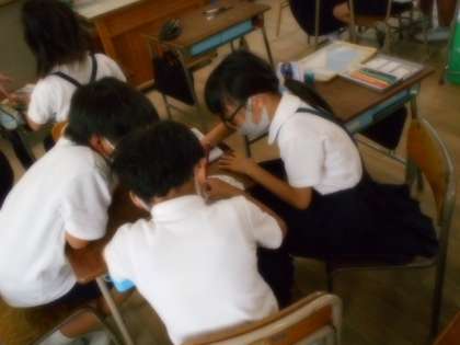 見守り隊の方々にどんなことを書けば、感謝の気持ちが伝わるのか、友だちと相談しながら考えていました。